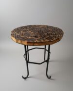 )Natural Wood (Torched/Charred Finish), Black Wrought Iron Base |
