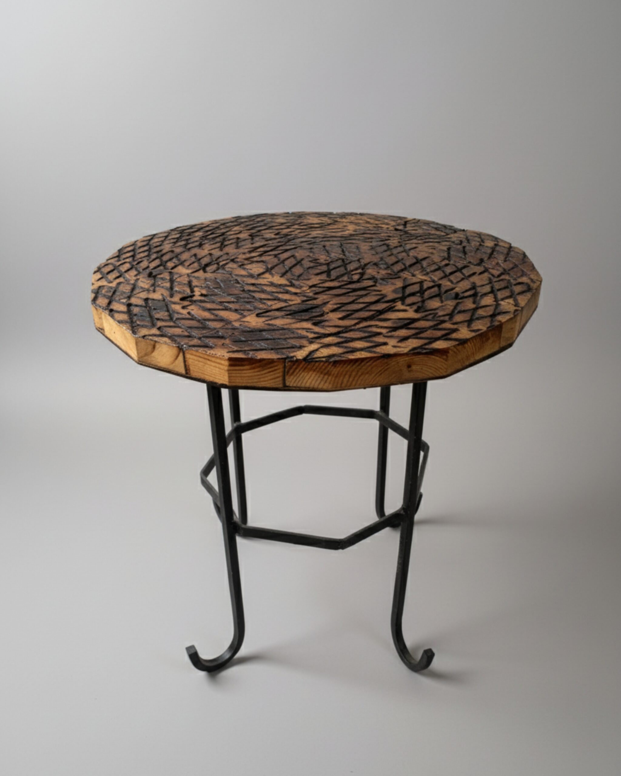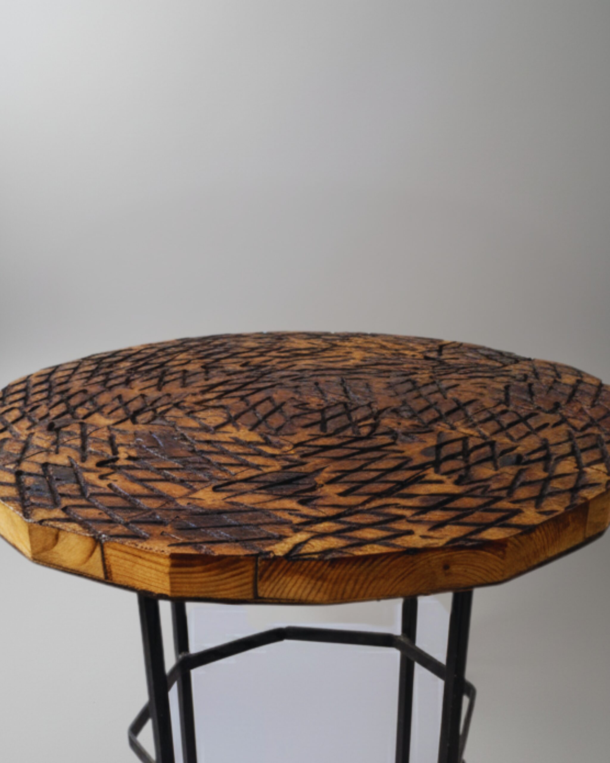 CHAR Side Table: Hand-Carved & Torched Wood Accent
