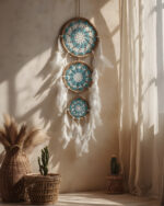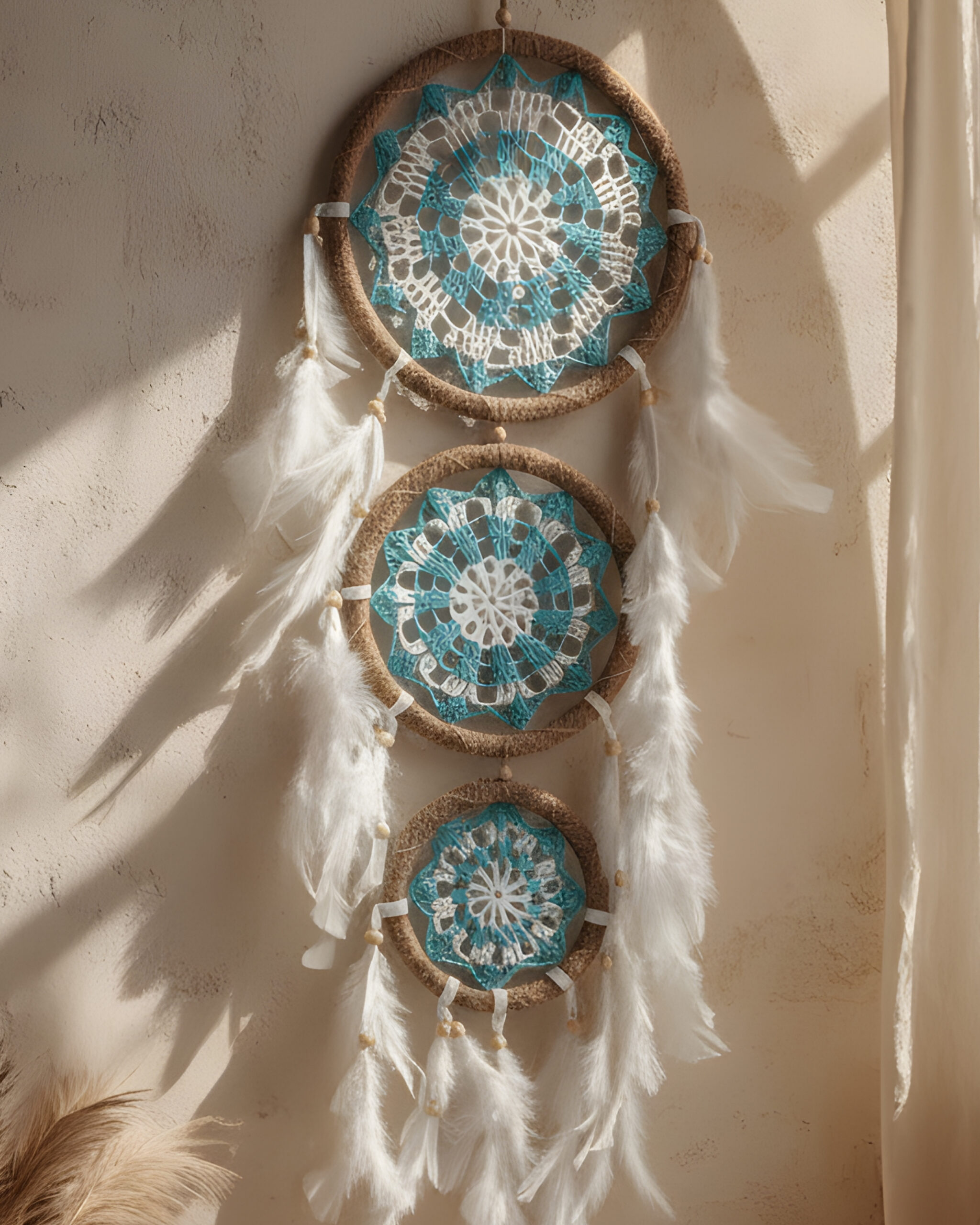 Each piece is entirely handcrafted, featuring a sturdy outer ring wrapped in natural twine and an intricate hand-woven macrame web at the center. Natural and Bohemian Style: We use sustainable materials including natural fibers (Macrame/Crochet), wooden beads, and soft, cruelty-free feathers.