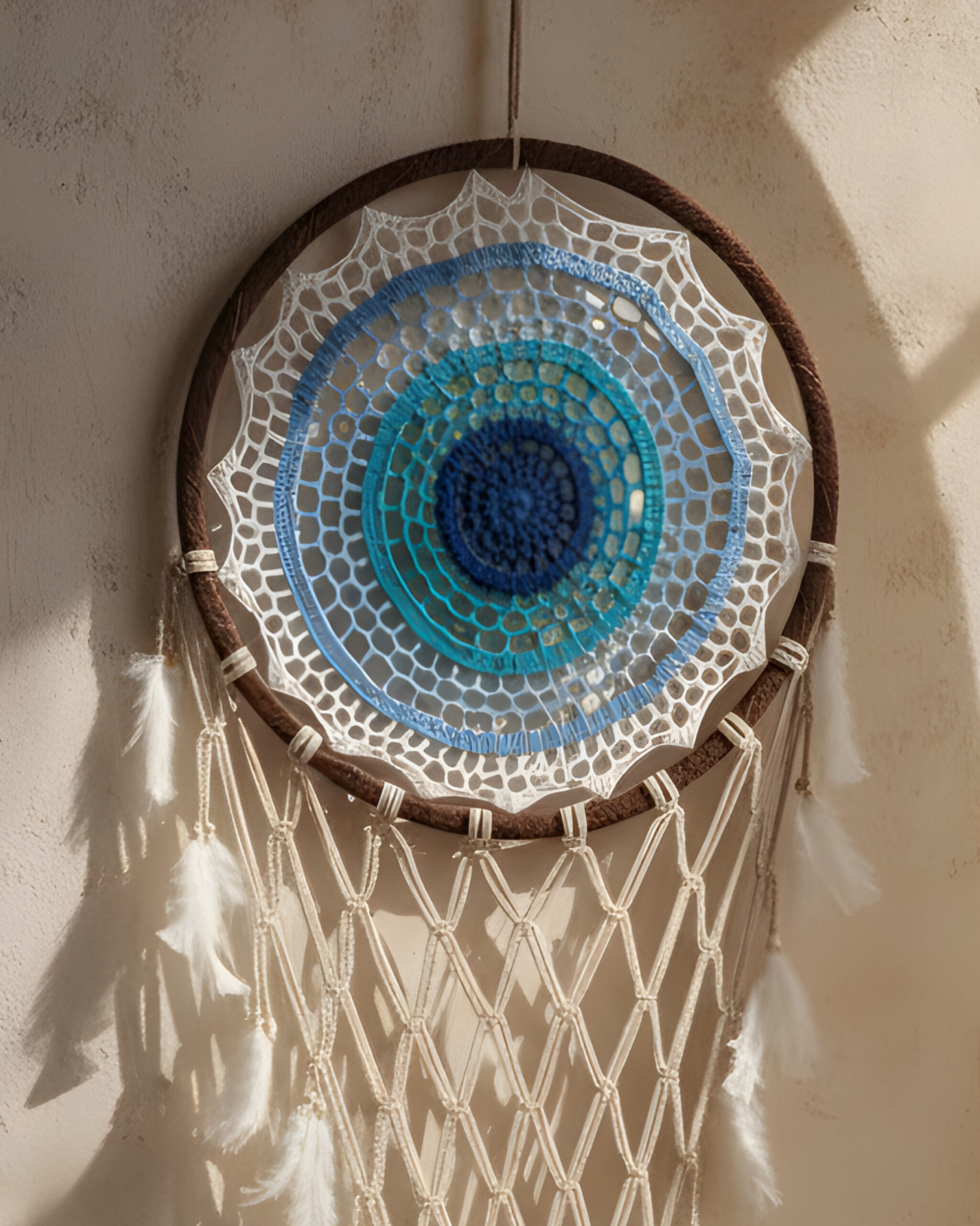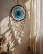 Each piece is entirely handcrafted, featuring a sturdy outer ring wrapped in natural twine and an intricate hand-woven macrame web at the center. Natural and Bohemian Style: We use sustainable materials including natural fibers (Macrame/Crochet), wooden beads, and soft, cruelty-free feathers.
