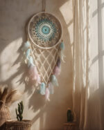 Each piece is entirely handcrafted, featuring a sturdy outer ring wrapped in natural twine and an intricate hand-woven macrame web at the center. Natural and Bohemian Style: We use sustainable materials including natural fibers (Macrame/Crochet), wooden beads, and soft, cruelty-free feathers.