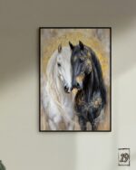 WILD ART – Dramatic Art of Wildlife: This collection is for clients seeking powerful pieces of art inspired by the beauty of the animal kingdom. Our designs feature dramatic portraits of horses in rich colors and textures, and birds and marine creatures with captivating artistic touches. Each piece is a masterpiece that exudes power and elegance. Superior Print Quality and Protection: The paintings are printed on high-quality wood panel using the highest digital printing quality. Most importantly: We coat each panel with a high-quality protective layer against water, scratches, and dust, ensuring that the dramatic details and colors remain vivid for longer. Ready to Hang: Perfect for living rooms, offices, or any space that needs a touch of luxury and natural power.